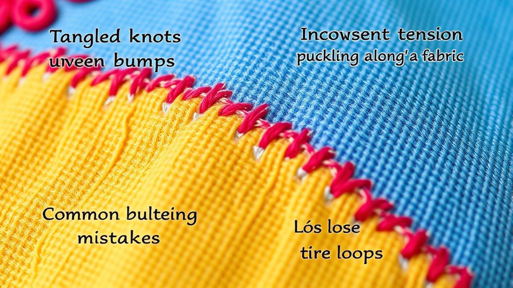Common embroidery mistakes like knots, tension issues, and puckering happen when your technique isn’t quite right but are easy to fix. Check your tension—tighten or loosen as needed on scrap fabric to prevent puckering and uneven stitches. Use quality threads suited to your fabric and adjust stitch density for smooth designs. Practice proper tension and stitch length, and troubleshoot knots with correct threading. Keep exploring, and you’ll master these adjustments for perfect embroidery results.