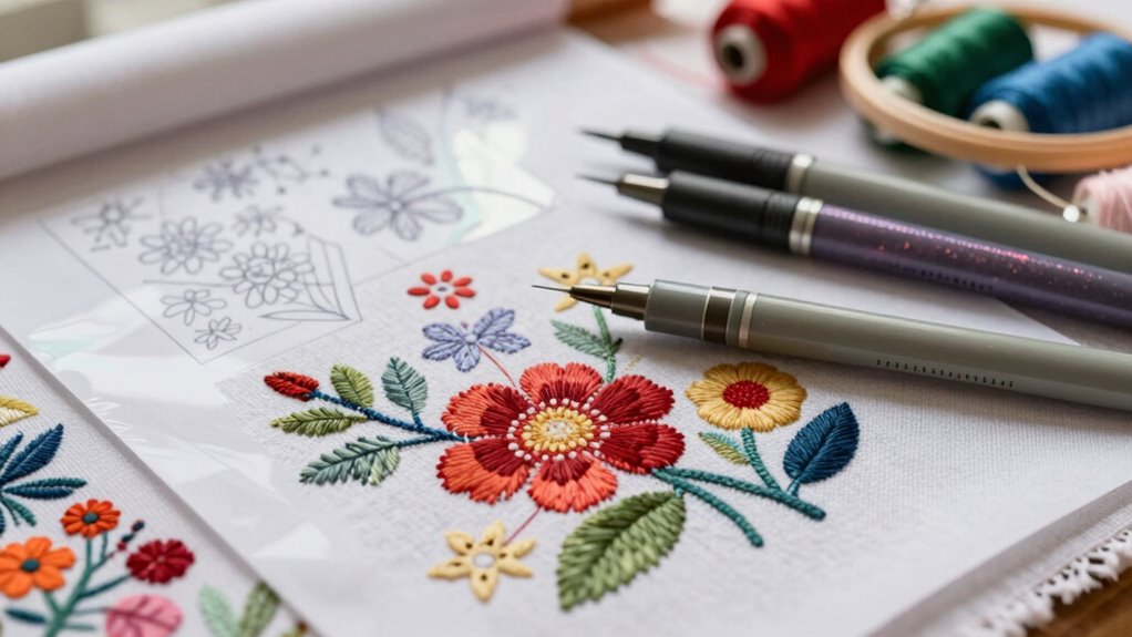Choosing the right embroidery transfer method is like finding the perfect key to open your project’s potential. Whether you prefer the durability of heat transfer paper or the simplicity of iron-on transfers, selecting what suits your needs guarantees your design stays vibrant and true. Don’t let transfer troubles cast a shadow over your craft—arm yourself with the right technique, and your embroidery will shine brighter than a star in the night sky.