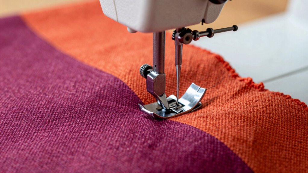 You’ll need a heavy-duty needle size 16 or 18 and adjustable fabric tension to handle upholstery weight fabric. Ironically, the right accessories seem simple but are vital—without them, your project’s doomed. Invest in sturdy, sharp needles to prevent skipped stitches, and tweak the tension for even seams. These essentials make all the difference, ensuring your machine can tackle the toughest fabrics without a hitch.