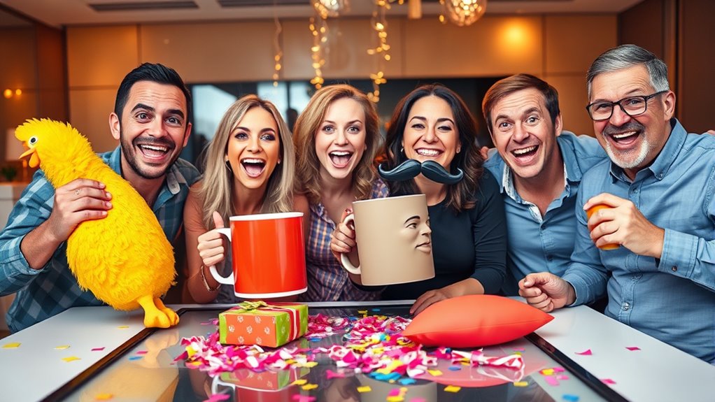 If you’re worried about offending sensitive adults, I recommend choosing gag gifts that are light-hearted and harmless. Think silly mugs, funny stress balls, or quirky office supplies—things that make people smile without crossing boundaries. I always avoid overly crude or offensive items. Instead, I focus on gifts that are playful and inclusive, ensuring everyone feels comfortable while still sharing a good laugh.
