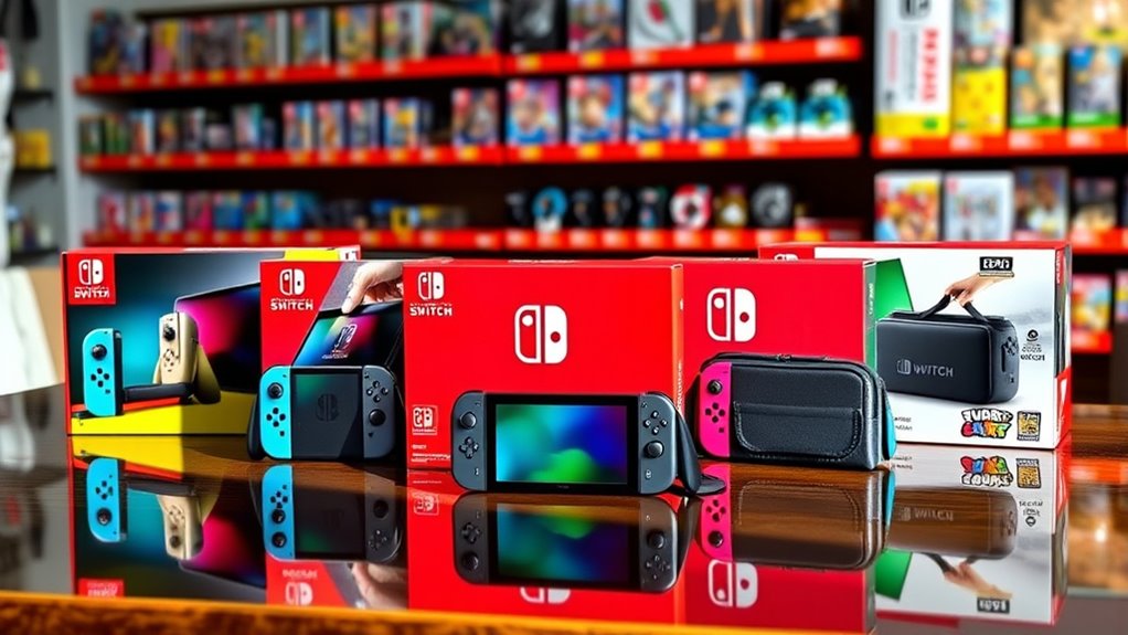 Selecting a Nintendo Switch 2 bundle involves more than just checking compatibility; it’s also about understanding the variety of accessories included. Different bundles come with a range of items, from basic essentials like controllers and screen protectors to more extensive sets featuring carrying cases, charging docks, steering wheels, or ergonomic grips. Some focus on providing thorough protection and organization, while others emphasize enhancing gameplay experiences for specific genres like racing or fighting games. The number of items can vary greatly, with some bundles offering just a few key accessories, and others including over a dozen components. Reviewing each bundle’s contents helps guarantee you get the accessories that match your gaming style and needs, making your overall experience more tailored and enjoyable.
