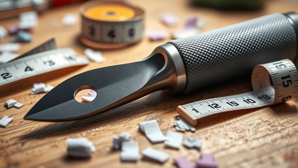 Selecting a pattern notcher that feels comfortable and easy to use can make a significant difference in your sewing experience. An ergonomic handle design reduces hand fatigue, especially during long sessions, keeping you comfortable and focused. Tools with spring mechanisms require less effort for each notch, making the process smoother and less tiring. Cushioned grips or textured surfaces improve control and prevent slipping, giving you confidence with every cut. Lightweight materials and balanced weight distribution help minimize strain and enhance maneuverability, so your hand stays relaxed. Clear, easy-to-read scale markings simplify positioning, reducing the need for constant adjustments. Altogether, these features boost efficiency and comfort, making your pattern notching process more enjoyable and precise.
