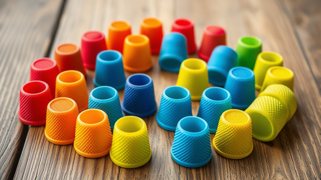 Silicone thimbles improve finger protection by providing a soft, flexible barrier that absorbs pressure and prevents needle pricks. I love how they fit snugly over my finger, giving me better control and reducing discomfort during sewing. Unlike traditional metal thimbles, silicone ones are comfortable for prolonged use, and I don’t worry about slips or injuries. They’re a simple, effective way to keep my fingers safe and sewing smoothly.