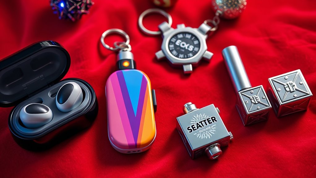 Ever wondered how to make your teen’s stocking stuffer stand out in 2025? The key is aligning with current trends that resonate with teens today. Pay attention to what’s popular on social media—whether it’s minimalistic accessories, retro-inspired gadgets, or tech-savvy designs. Incorporating trending colors, patterns, or motifs can make your gift more appealing and relevant. Think about emerging hobbies like eco-friendly products or gaming accessories—they’re hot right now. Choosing items that reflect these interests shows you’re in tune with their world. Staying updated on pop culture and fashion trends helps you pick gifts that feel fresh and desirable. When your stocking stuffer matches the latest trends, it’s sure to make a memorable and appreciated impression.