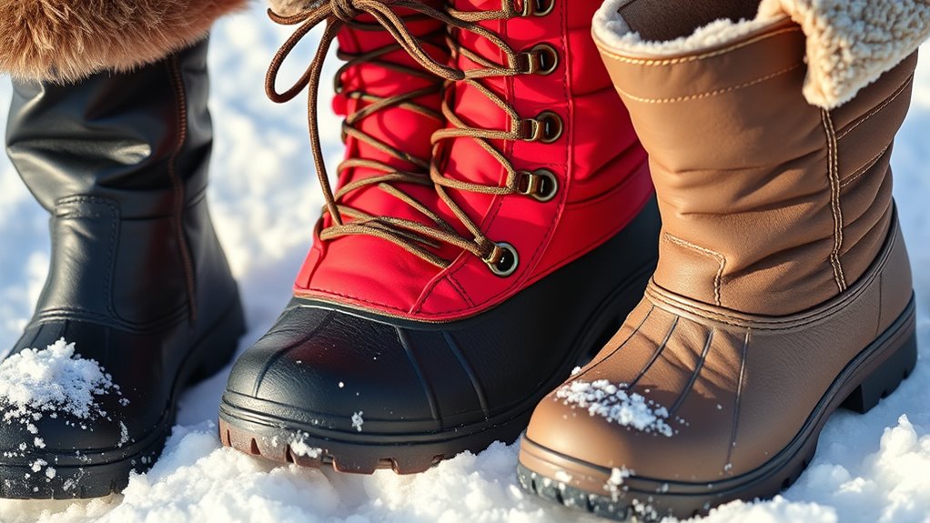 No matter which pair you choose, these boots will keep your feet dry and warm through the harshest winter storms—making you feel like you’re walking on clouds! Remember to contemplate comfort, insulation, and waterproof features to find your perfect match. Trust me, once you slip into the right pair, winter won’t stand a chance against your cozy, dry feet. Stay warm, stay stylish, and conquer the snow with confidence!